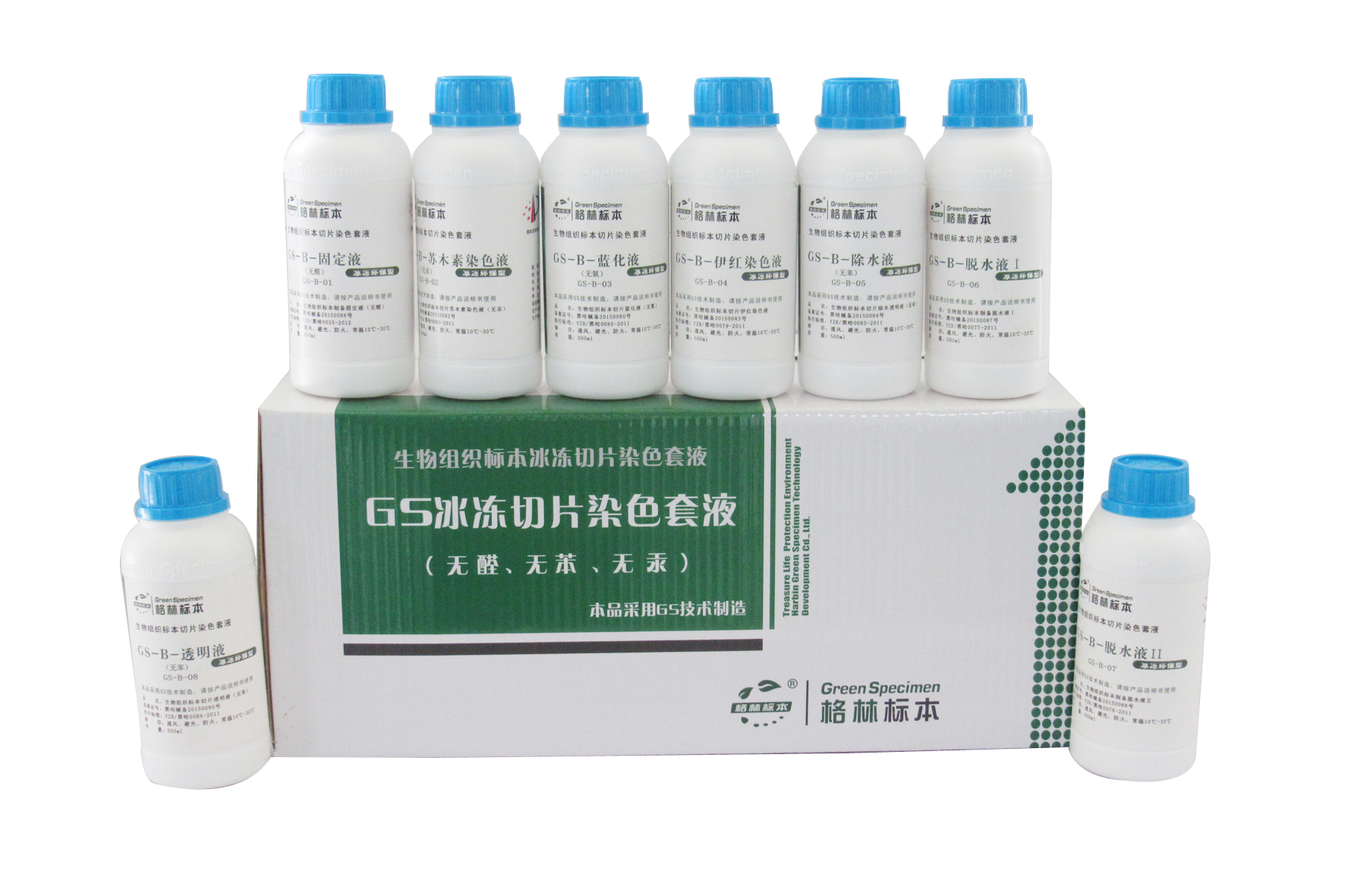 哈爾濱格林標本技術開發(fā)有限公司為了免除甲醛、二甲苯、氧化汞等對于病理工作者身體及環(huán)境的危害,本著健康、環(huán)保、優(yōu)質的原則,多年來一直致力于環(huán)保病理試劑的科研和開發(fā),經不斷探索、嘗試和實踐應用,***終研發(fā)出病理專用環(huán)保試劑“GS組織樣本制備及切片染色系列試劑”,該試劑不含甲醛、二甲苯、氧化汞等對人身和環(huán)境有極大危害的有毒化學試劑,其功效完全優(yōu)于目前大量使用的以甲醛、二甲苯為主的傳統病理試劑,是完全可以替代傳統有毒試劑并具有強烈革命色彩的全新環(huán)保試劑產品。